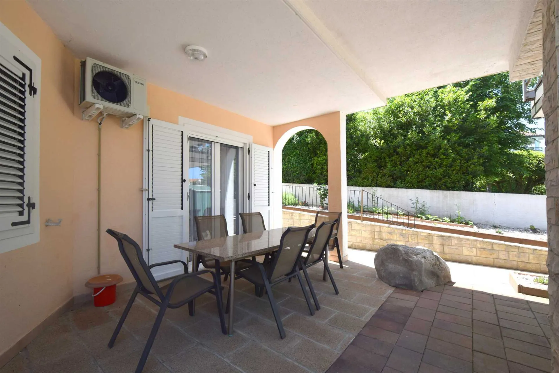 Das Apartmenthaus Frane liegt ca. 3300 m von Malinska entfernt im kleinen Touristendorf Vantačići. Das Haus und die Küste sind etwa 20 Meter voneinander entfernt. Das Anwesen verfügt über drei Wohnungen, jedes mit einem atemberaubenden Blick auf das Meer. Mit 60 Quadratmetern kann die ebenerdige Wohnung Frane 3 fünf Personen beherbergen. Es verfügt über zwei Schlafzimmer, einen Essbereich, ein Wohnzimmer mit einer Couch, die als Zustellbett genutzt werden kann, eine Küche, ein Badezimmer mit Badewanne und eine private Terrasse mit Meerblick. Sie haben auch Zugang zu Parkplätzen, WLAN, eine Kaffeemaschine und Sat-TV. Haustiere sind nicht erlaubt.