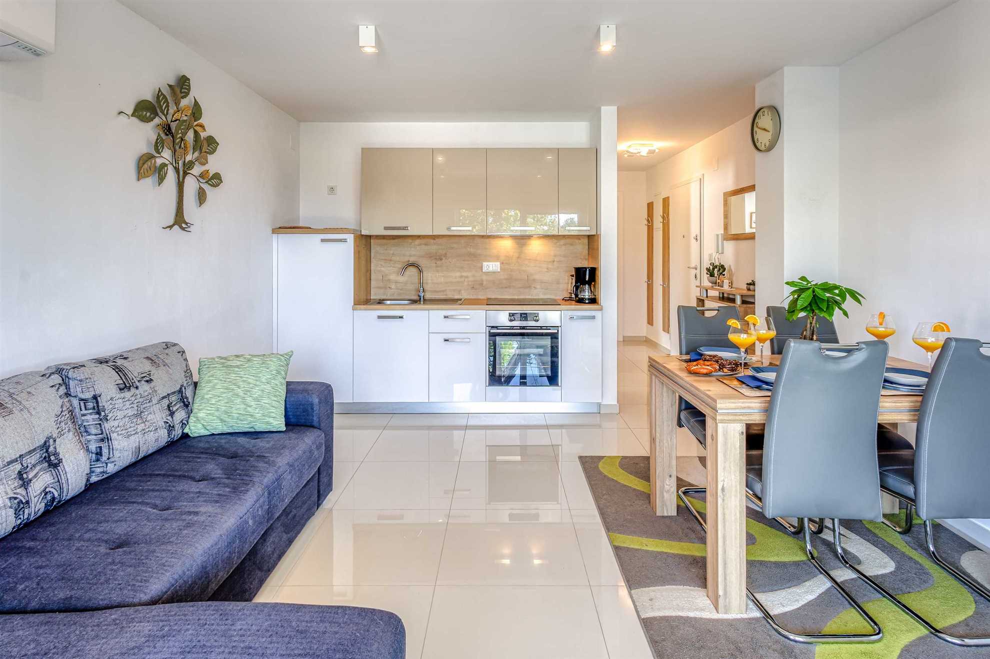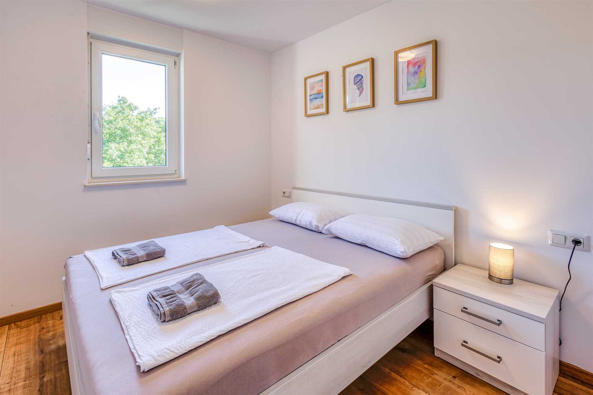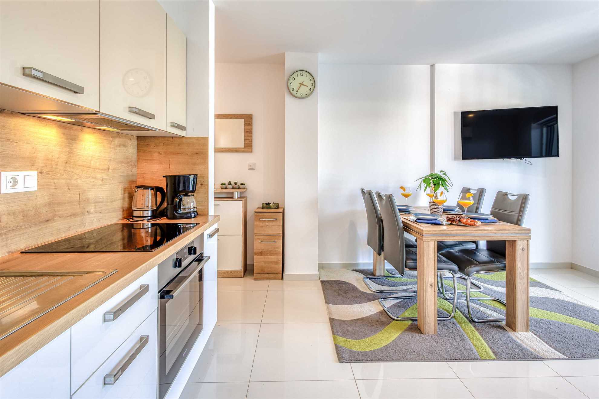 Dieses moderne Apartment in Njivice liegt nur 350 Meter vom Meer und 400 Meter vom Stadtzentrum entfernt und bietet einen perfekten Urlaub für Familien oder Paare. Es ist 48 Quadratmeter groß und verfügt über zwei Schlafzimmer mit Doppelbetten, ein Badezimmer mit Dusche und Waschmaschine, eine voll ausgestattete Küche und ein Wohnzimmer mit Klimaanlage und Satellitenfernsehen. Ein 10 Quadratmeter großer Balkon bietet einen atemberaubenden Meerblick und ist ideal zum Entspannen. Das Apartment befindet sich in einem neu gebauten Gebäude mit Privatparkplatz und bietet Komfort und Bequemlichkeit. Bitte beachten Sie, dass Haustiere nicht erlaubt sind.