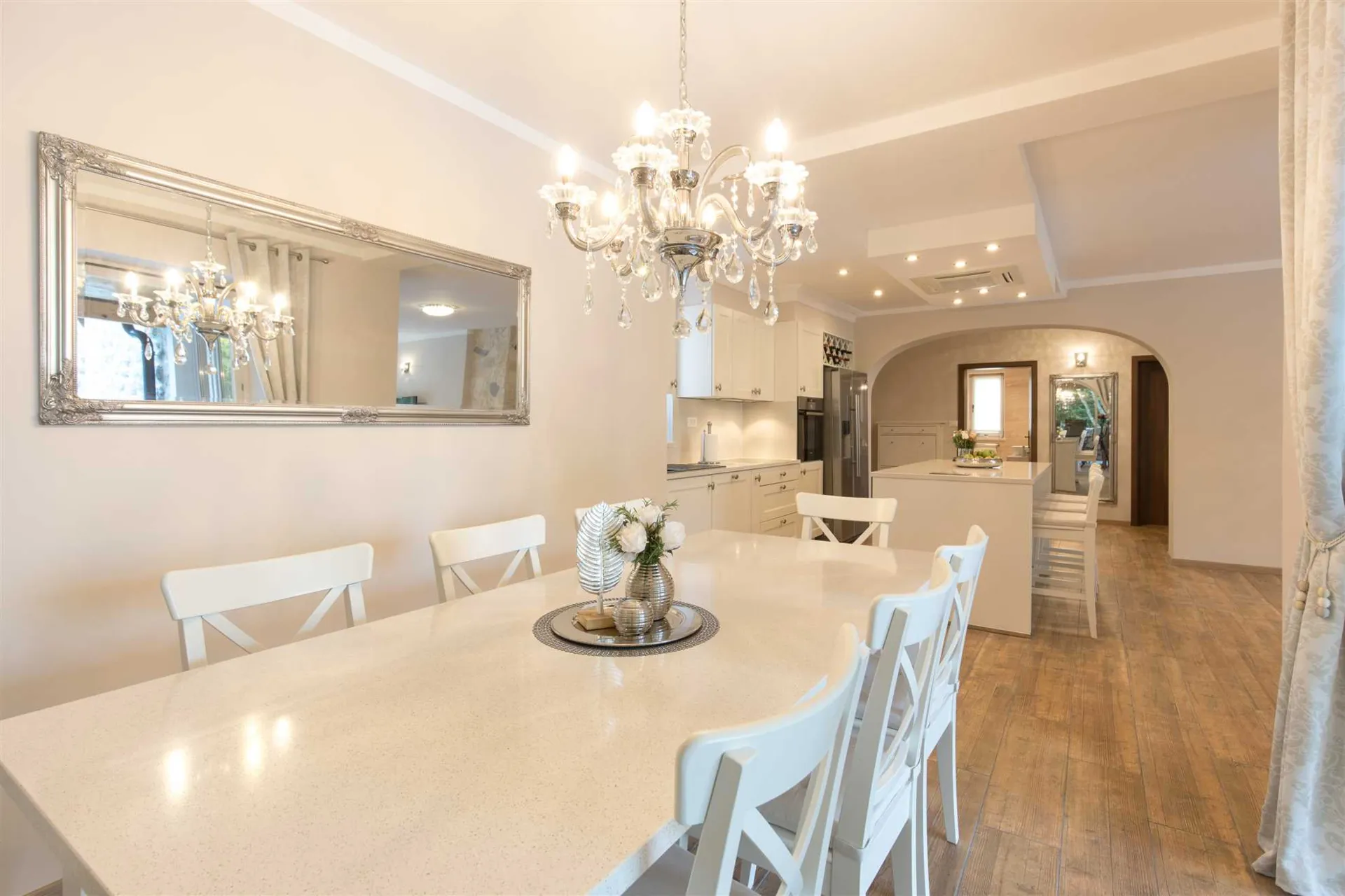 Entdecken Sie die traumhafte Villa Diamante auf der Insel Krk in der malerischen Kvarner Bucht. Diese großzügige Villa bietet auf 185 Quadratmetern Wohnfläche Platz für bis zu 8 Gäste und verfügt über 4 Schlafzimmer und 3 Badezimmer. Genießen Sie entspannte Urlaubstage am privaten Swimmingpool, der von einer wunderschön angelegten Gartenanlage umgeben ist. Für Ihren Komfort stehen ausreichend Parkplätze zur Verfügung. Die Villa ist mit einer Klimaanlage ausgestattet, die an heißen Sommertagen für angenehme Temperaturen sorgt. In der modernen Küche finden Sie alle notwendigen Geräte wie Geschirrspüler, Mikrowelle, Wasserkocher und Kaffeemaschine. Die gemütlichen Schlafzimmer sind mit Bettwäsche ausgestattet, und in einer der Badezimmer stehen Ihnen eine Waschmaschine und ein Wäschetrockner zur Verfügung. Bitte beachten Sie, dass die Villa ein Nichtraucherdomizil ist. Die Außenbereiche sind mit bequemen Gartenmöbeln ausgestattet, die zum Entspannen und Genießen der idyllischen Atmosphäre einladen. Verbringen Sie Ihren nächsten Urlaub in Villa Diamante auf Krk und erleben Sie unvergessliche Momente in der wunderschönen Kvarner Bucht.