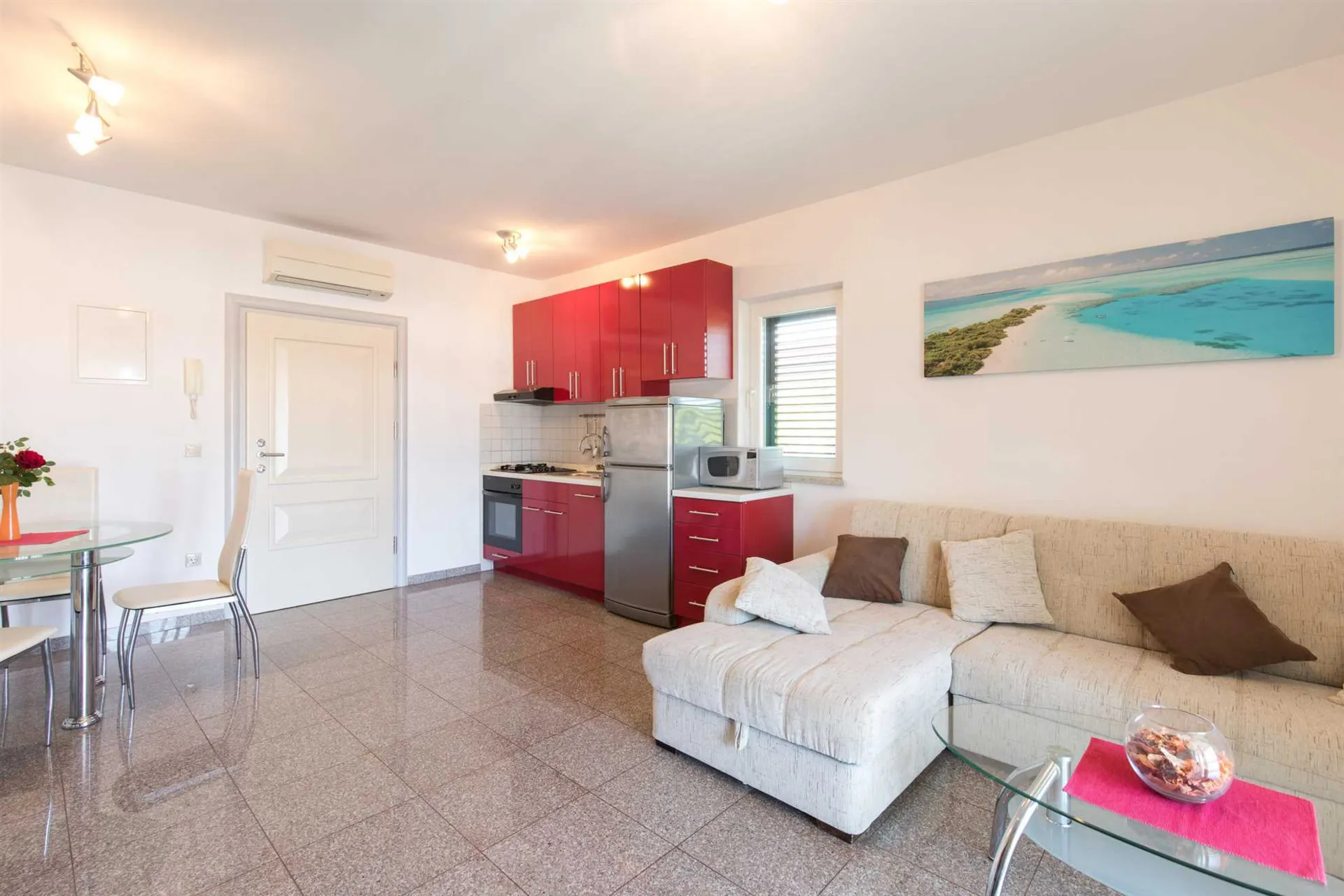 Ruhige Lage, Strand sehr nahe, Supermarkt mit dem Auto leicht zu erreichen, Abendessen mit einem kleinen Spaziergang verbunden ist auch sehr gut