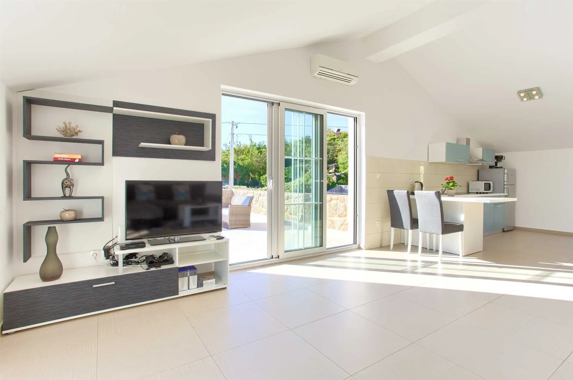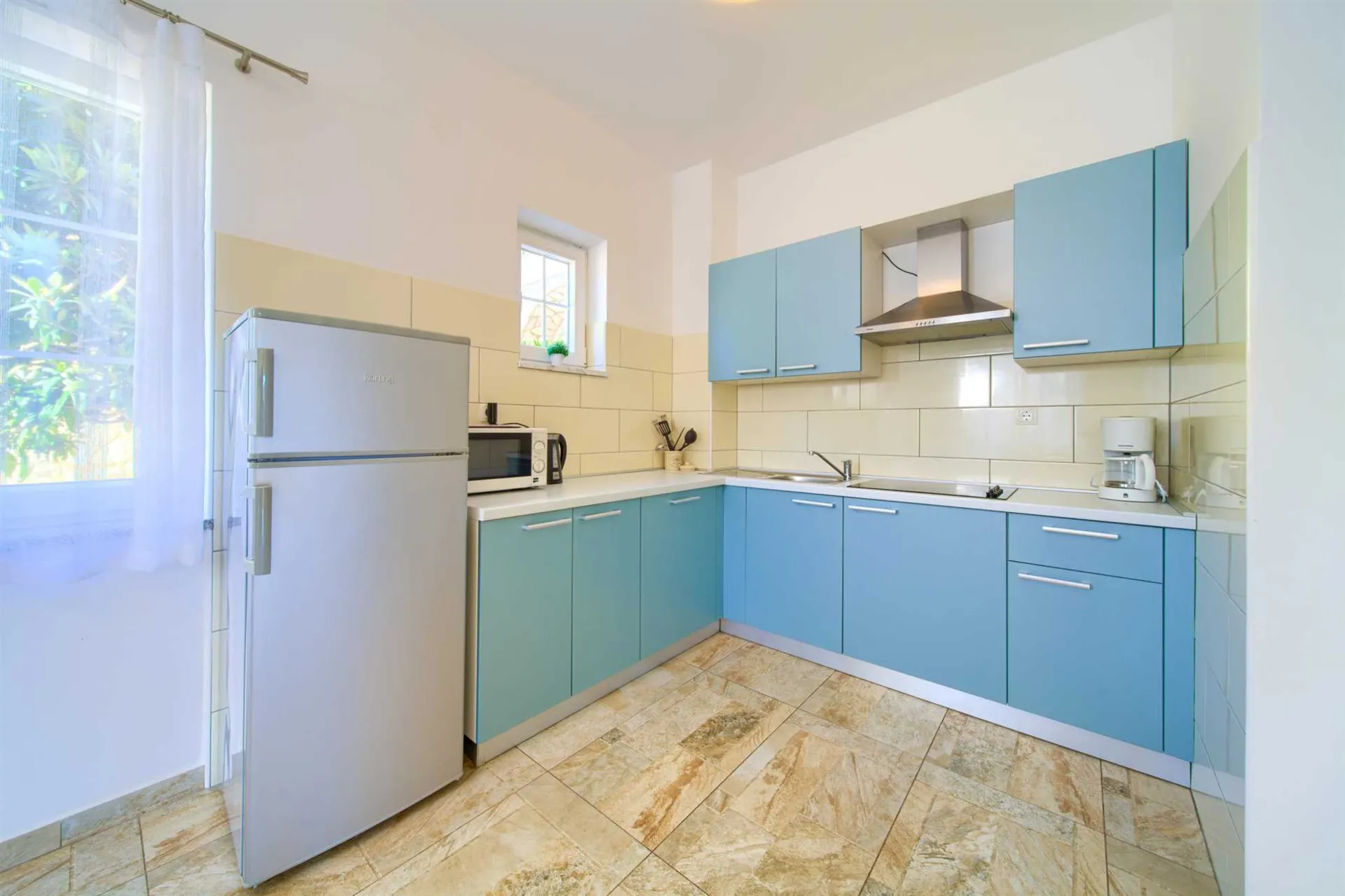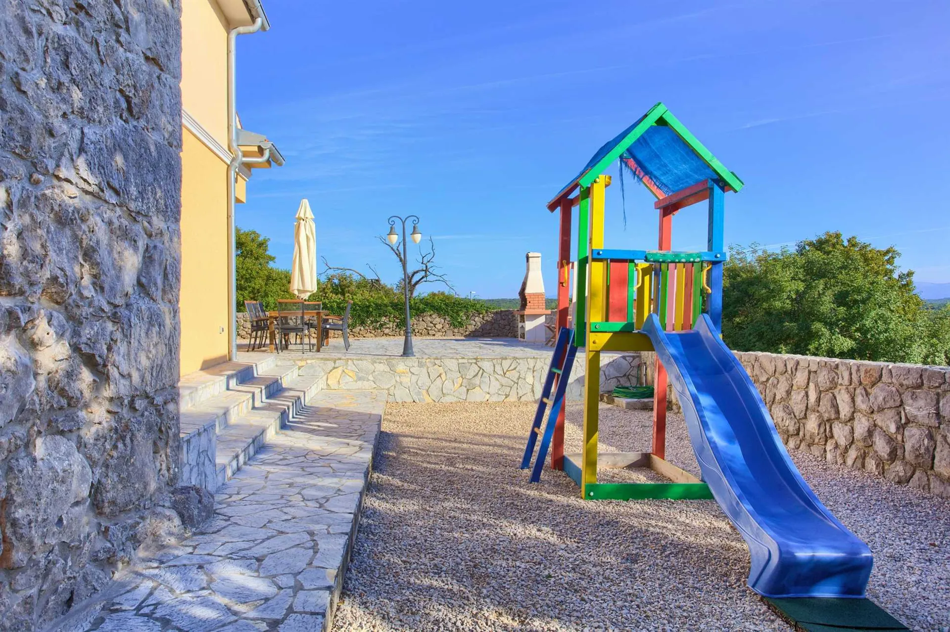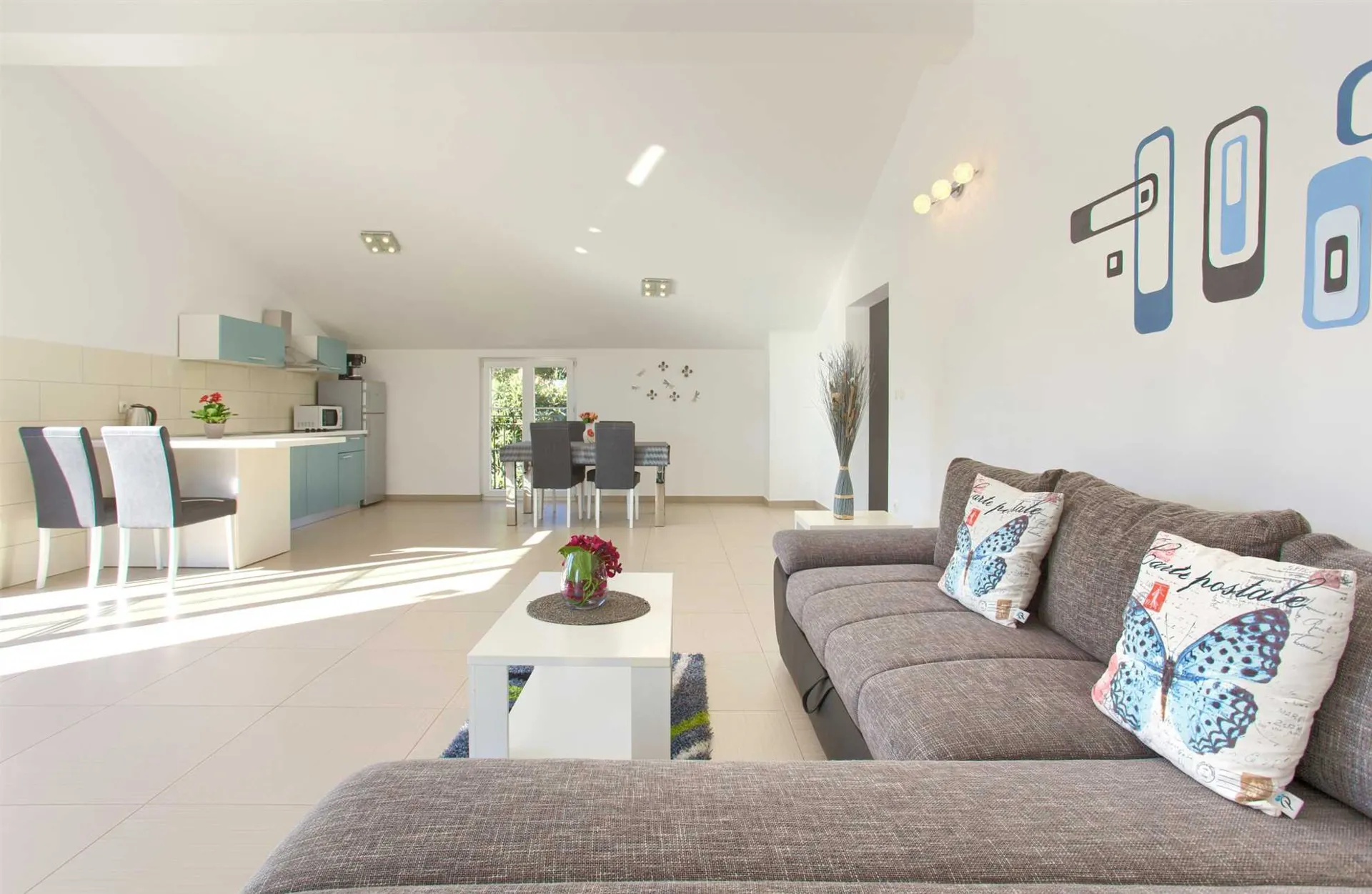 In Vrh, etwa 5 km von der Stadt Krk entfernt, befindet sich eine attraktive Villa mit einem atemberaubenden Pool. Es ist zum Sonnenbaden und Entspannen am schönen Pool eingerichtet und eignet sich für bis zu 10 Personen in zwei separaten Apartments mit jeweils zwei Schlafzimmern, einem Badezimmer mit Dusche, einer reich ausgestatteten Küche mit Wohnzimmer und Terrasse. Die Villa ist ideal zum geselligen Beisammensein, da sie über einen eigenen Grill und einen Essbereich im Freien verfügt. Am Pool gibt es Liegestühle und eine Dusche. Das Haus verfügt über einen Parkplatz und Haustiere sind nach vorheriger Ankündigung und gegen Gebühr erlaubt .