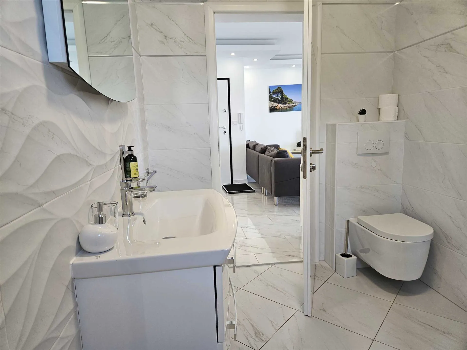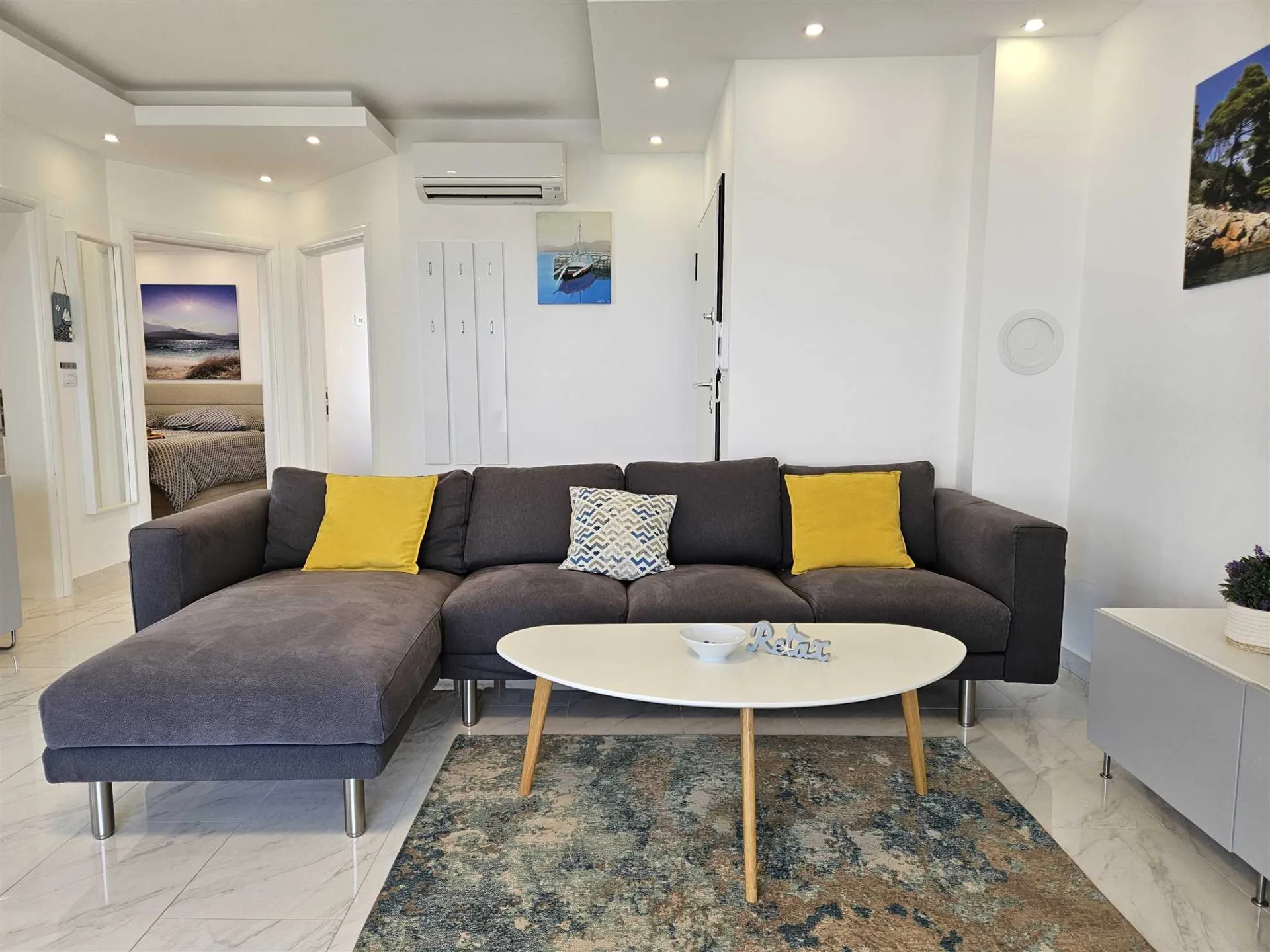 Apartment Buby is located in a new and modern building, not far from the center of Malinska. Here you can find a 65m2 apartment that can host up to four people. The apartment has its own balcony, a spacious living room with a kitchen and dining room, two bedrooms with double beds and a bathroom with a shower. The apartment contains everything that allows guests a pleasant and undisturbed stay; kettle, coffee machine, toaster, dishwasher, washing machine, satellite TV, air conditioning, internet access. Also, a parking space is provided.