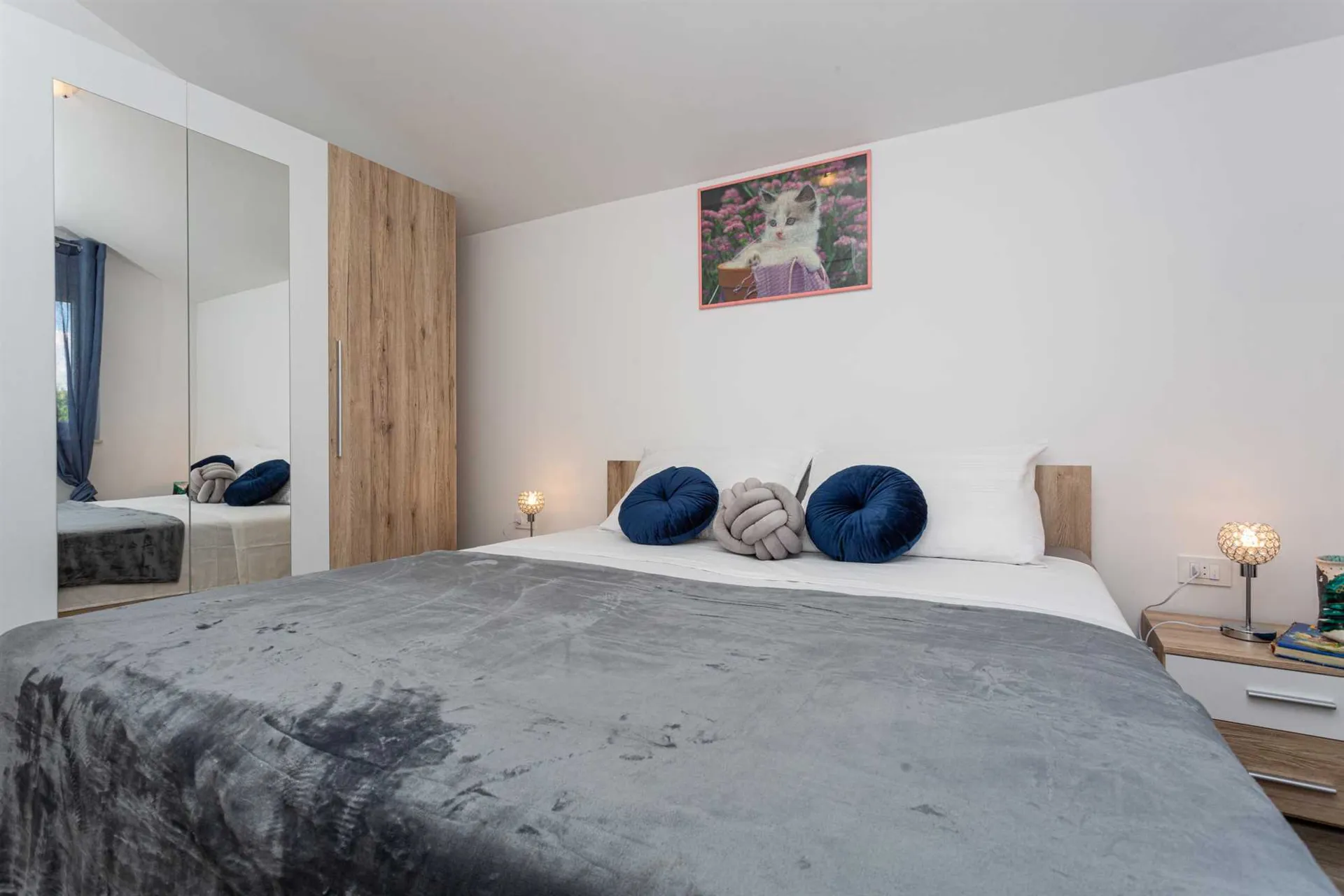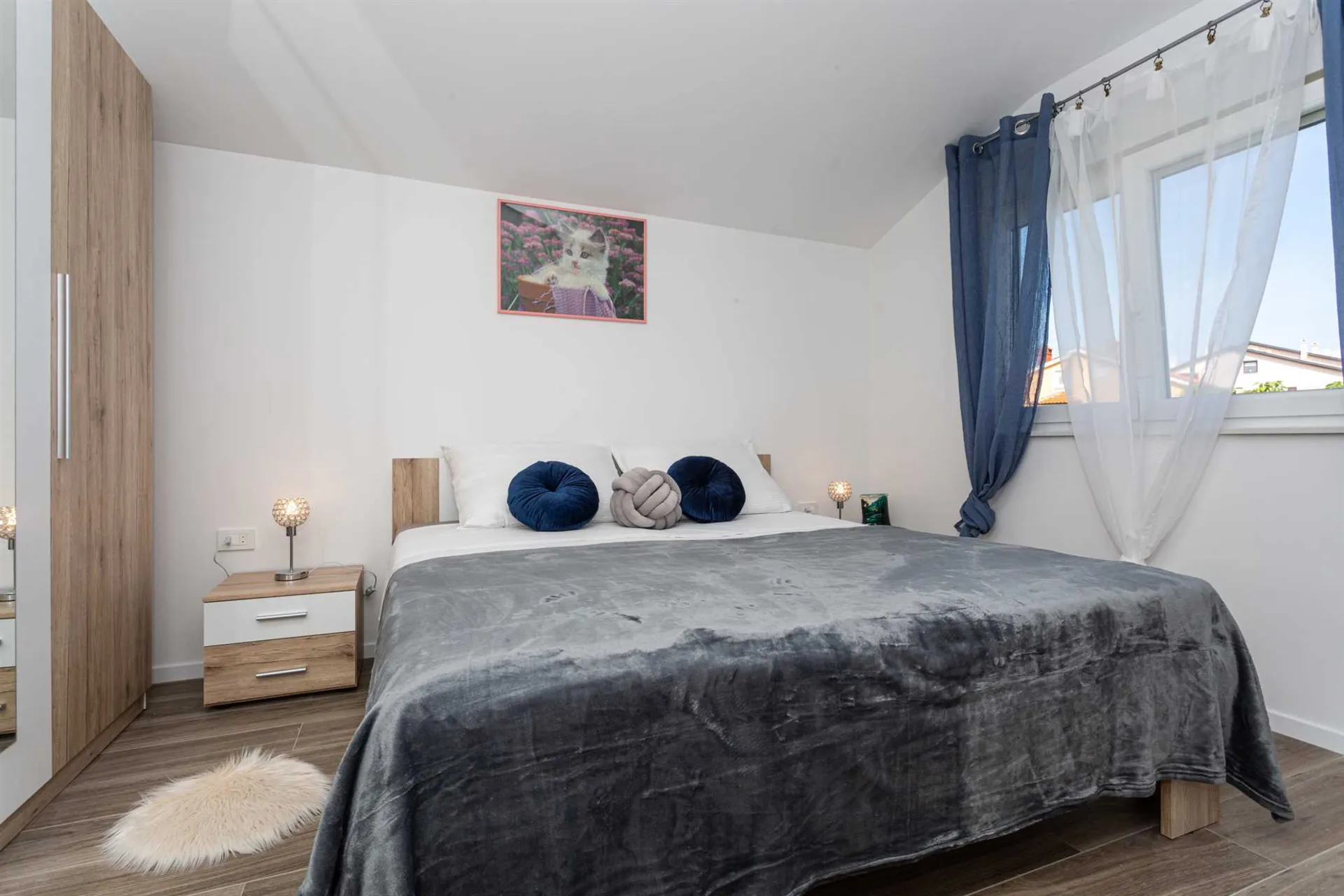 The luxurious Apartment Doris 2 is located in a newly built family house in the village of Porat, just a few steps from the sea, the harbor, and restaurants, near a pebble beach. This spacious, modernly furnished apartment is situated on the second floor and has a balcony with a beautiful sea view. The apartment consists of a fully equipped kitchen, a living room and dining area, two double bedrooms, one bathroom with a bathtub, and another with a shower. This is a place where you, your family, and your pets will enjoy your vacation.