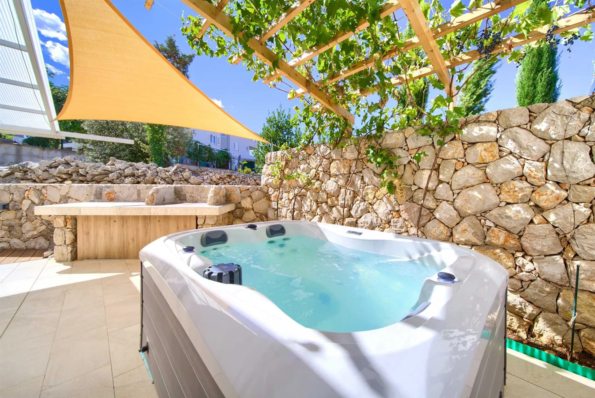 The exquisite Apartment Nadica Deluxe 3 with a hot tub is located a 2-minute walk from Rova Beach in Malinska and offers accommodation with air conditioning and free wireless internet access. The apartment has a fully equipped kitchen where a kettle, coffee maker, oven, and microwave are available. In the living room, there is a flat-screen TV and a sofa bed for a third person, while the bedroom features a double bed. The apartment is furnished to the highest standards. The bathroom with a shower also includes a washing machine, and towels and bed linen are provided. The apartment is located on the ground floor and has a garden with a barbecue area and sun loungers. Accommodation includes free parking in a private parking lot. Nearby are cycling trails and walking paths, and the sea is nearby. The center of Malinska is 1.5 km away. This property is not suitable for pets.
