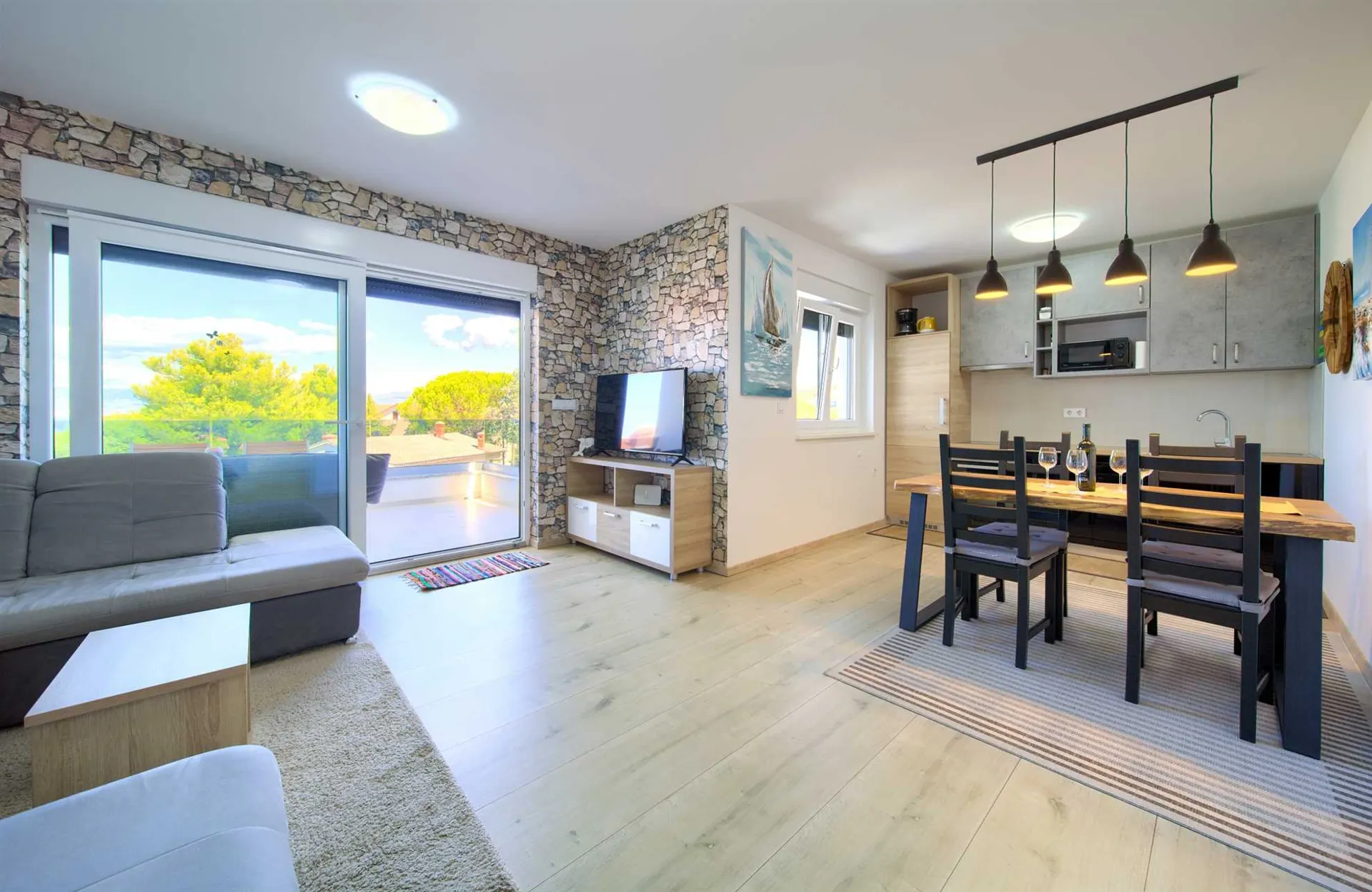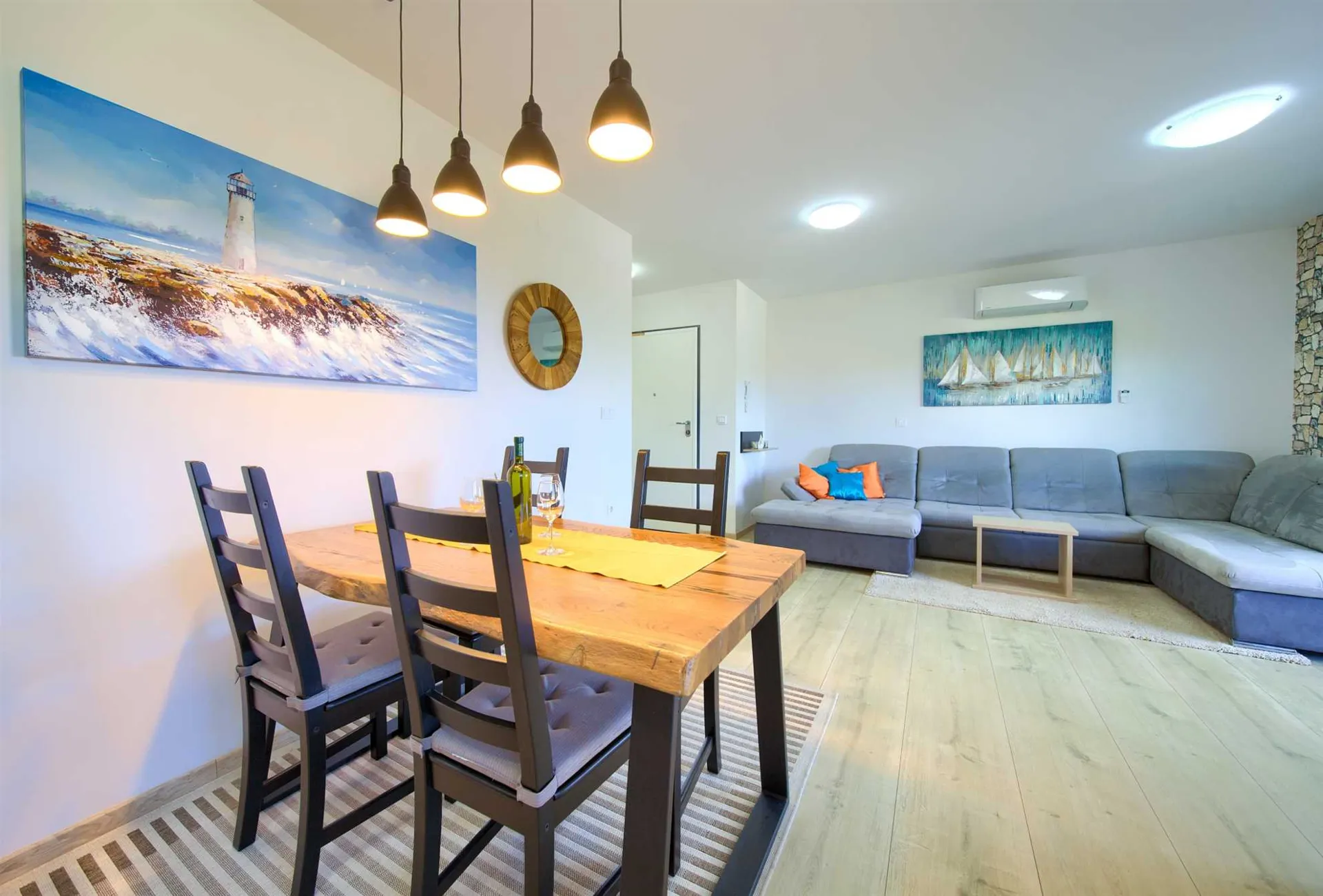 Apartment Nadica Deluxe 4 with sea view is located a 2-minute walk from Rova Beach in Malinska on the island of Krk, and offers accommodation with air conditioning and free wireless internet access. The apartment has a fully equipped kitchen where a kettle, coffee maker, oven, and microwave are available. In the living room, there is a flat-screen TV and a seating area. One bedroom has a double bed, while the other room has 2 separate beds. Apartment Nadica Deluxe 4 is equipped to the highest standards. The bathroom with a shower also includes a washing machine, and towels and bed linen are provided. The apartment is located on the second floor. Accommodation includes free parking in a private parking lot. Nearby are cycling trails and walking paths, and the sea is nearby. The center of Malinska is 1.5 km away. The apartment is not suitable for pets.
