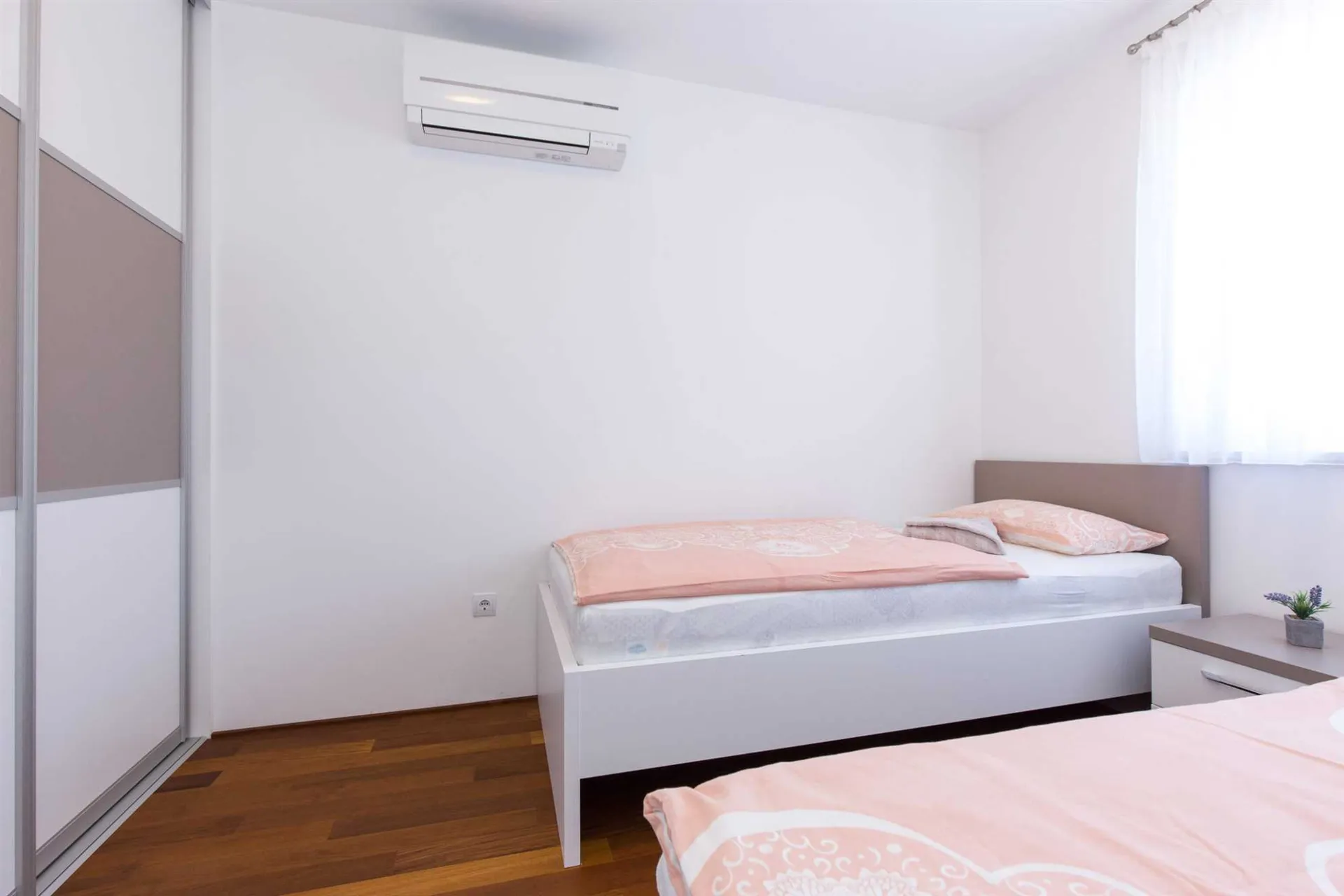 Perfektně situovaný apartmán s terasou s výhledem na moře. Oddělené ložnice pro dospělé a děti, klimatizace ve všech pokojích. Kompletní vybavení se vším co je potřeba.
