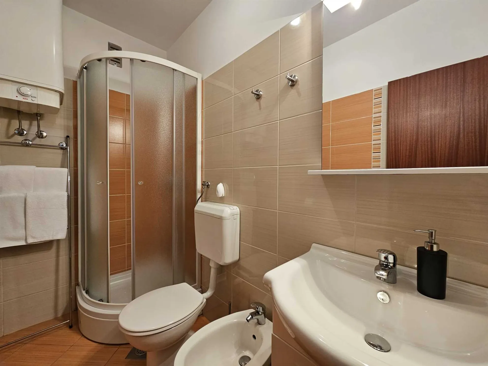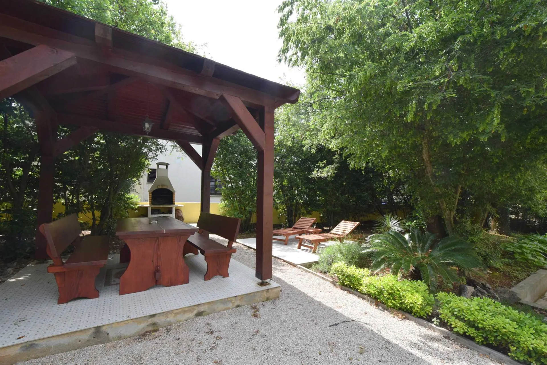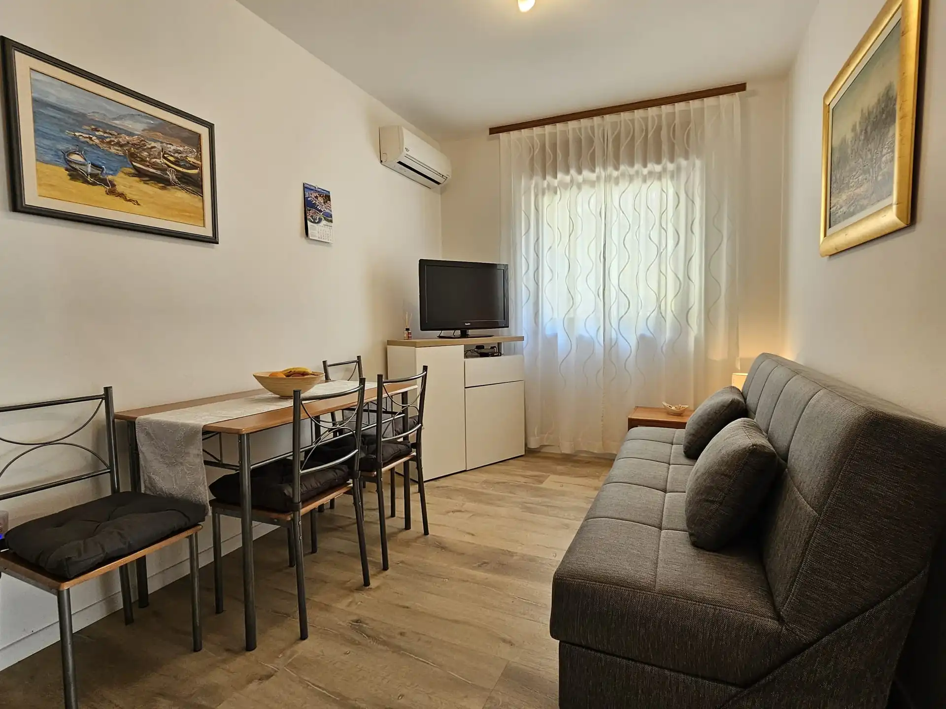 Apartments Olgica are located just a few steps from the center of Malinska, shops, and the coast. The nearest beach is 300 meters from this flowery environment with plenty of parking spaces and a total of 7 apartments. Apartment Olgica 101, located on the ground floor, covers an area of 30m2 with one bedroom, kitchen and living room, bathroom, and a covered terrace in a quiet green environment. This apartment is equipped for your safe and comfortable stay, providing you access to the Internet, SAT-TV, and air conditioning. With its own parking space in the yard, it ensures practicality. Unfortunately, pets are not allowed. Book your stay today and have a pleasant experience in Malinska!