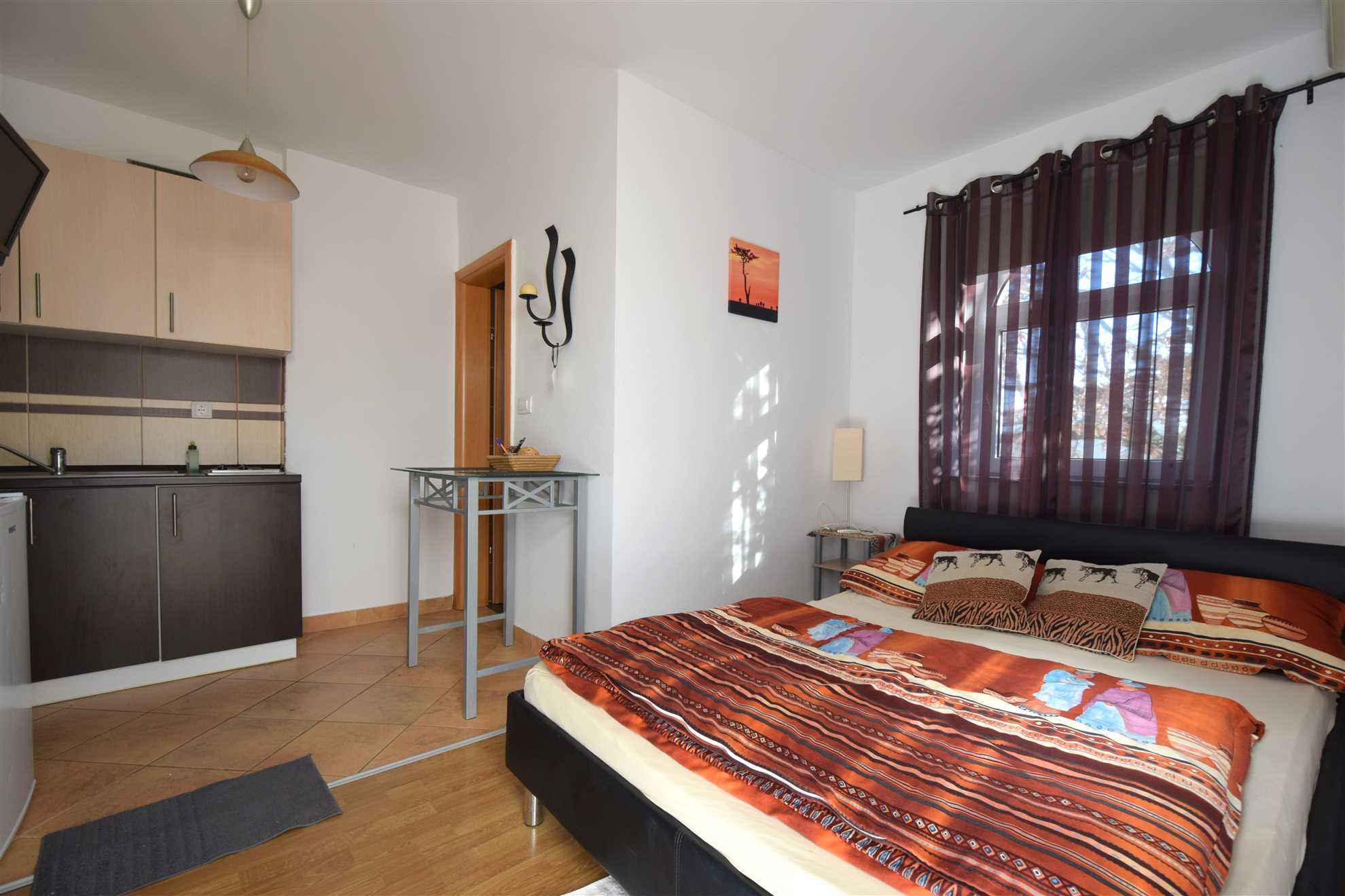 Family Home Mikec offers a few cozy apartments, like Studio Apartment Mikec on the first floor. This compact space features a small kitchen with essential appliances, a comfortable matrimonial bed in the living area, and a refreshing bathroom with a shower. Guests can enjoy amenities such as WiFi and satellite TV. Additionally, the apartment includes a small balcony and a parking space in the garden. Please note, that pets are not allowed in this accommodation.
