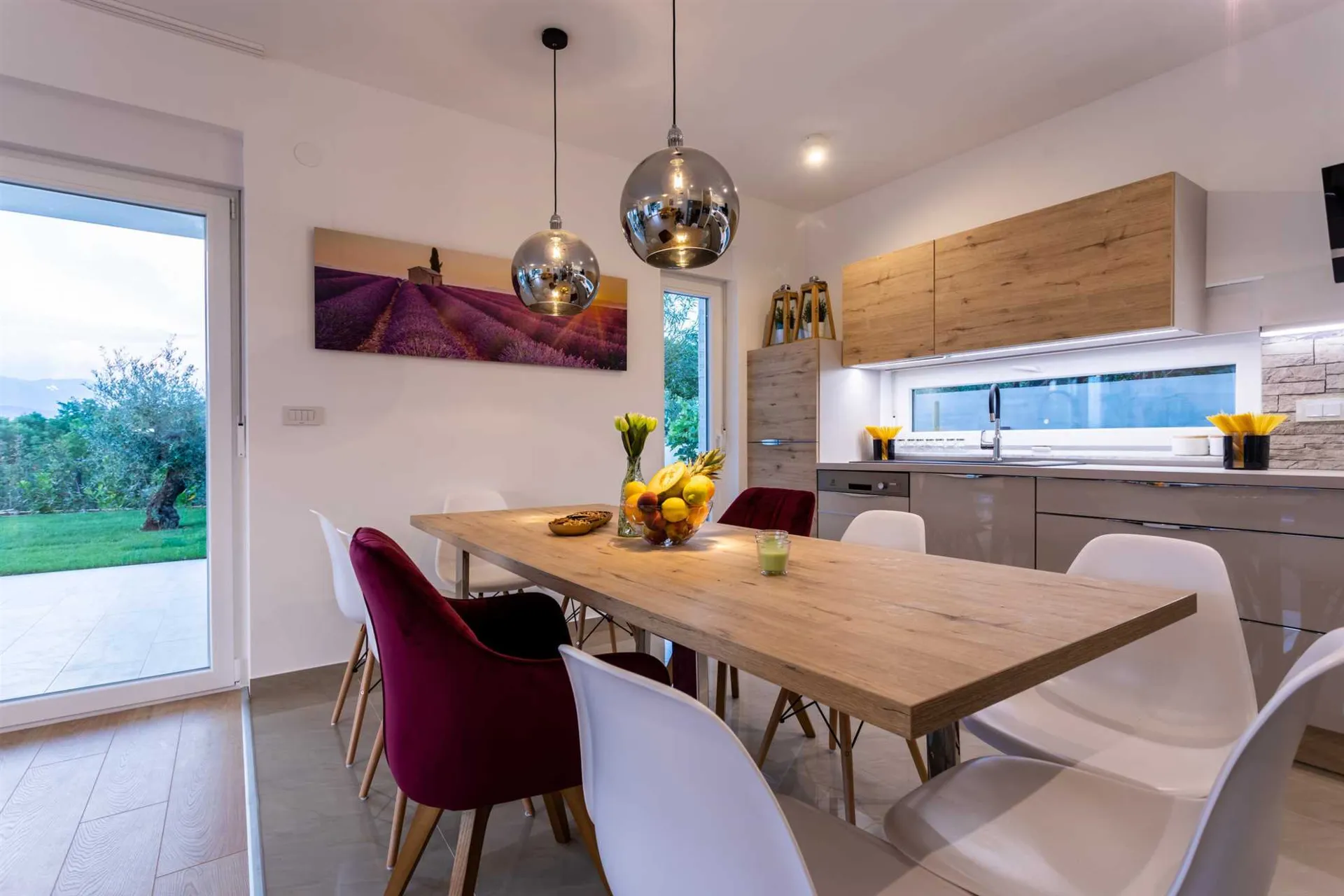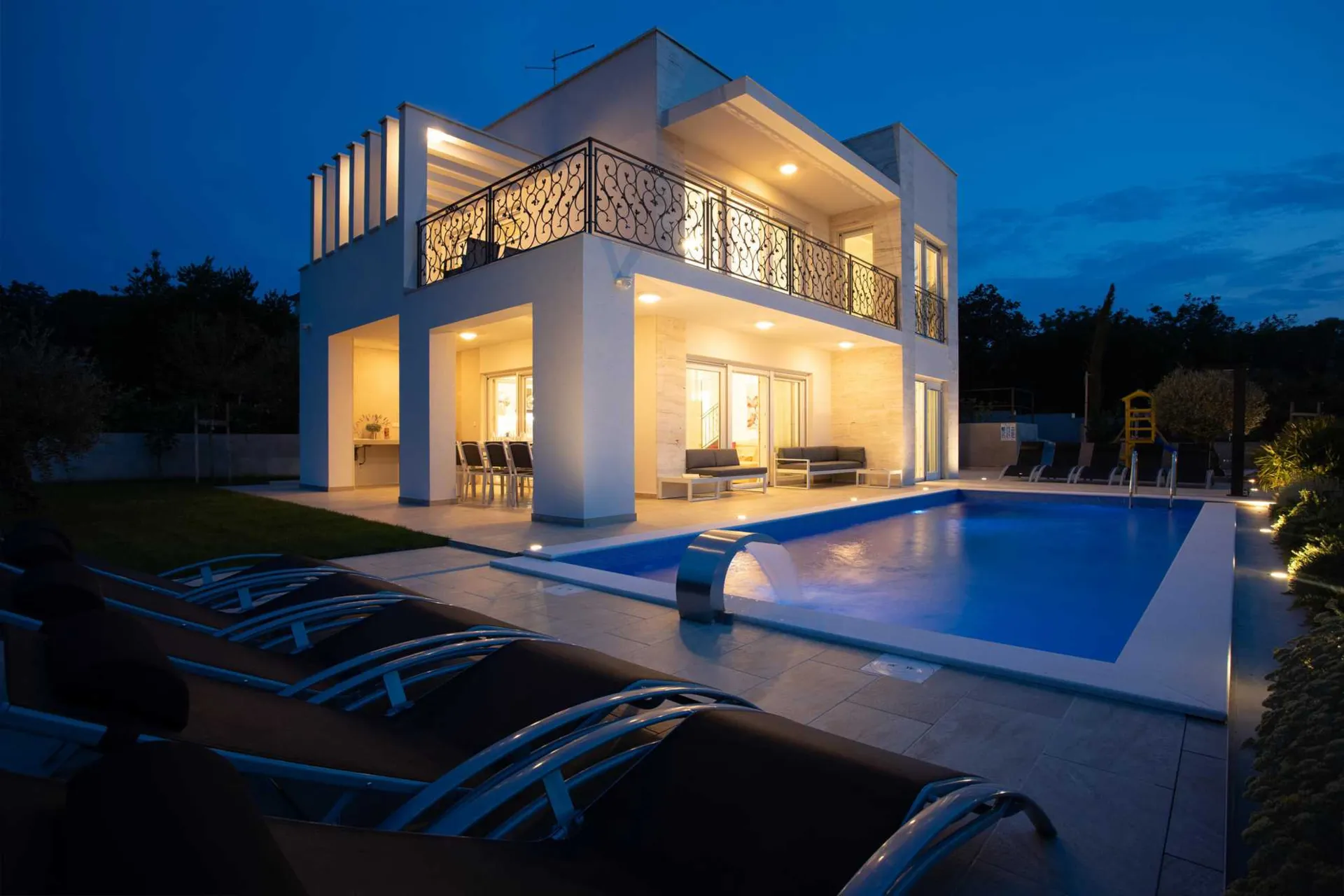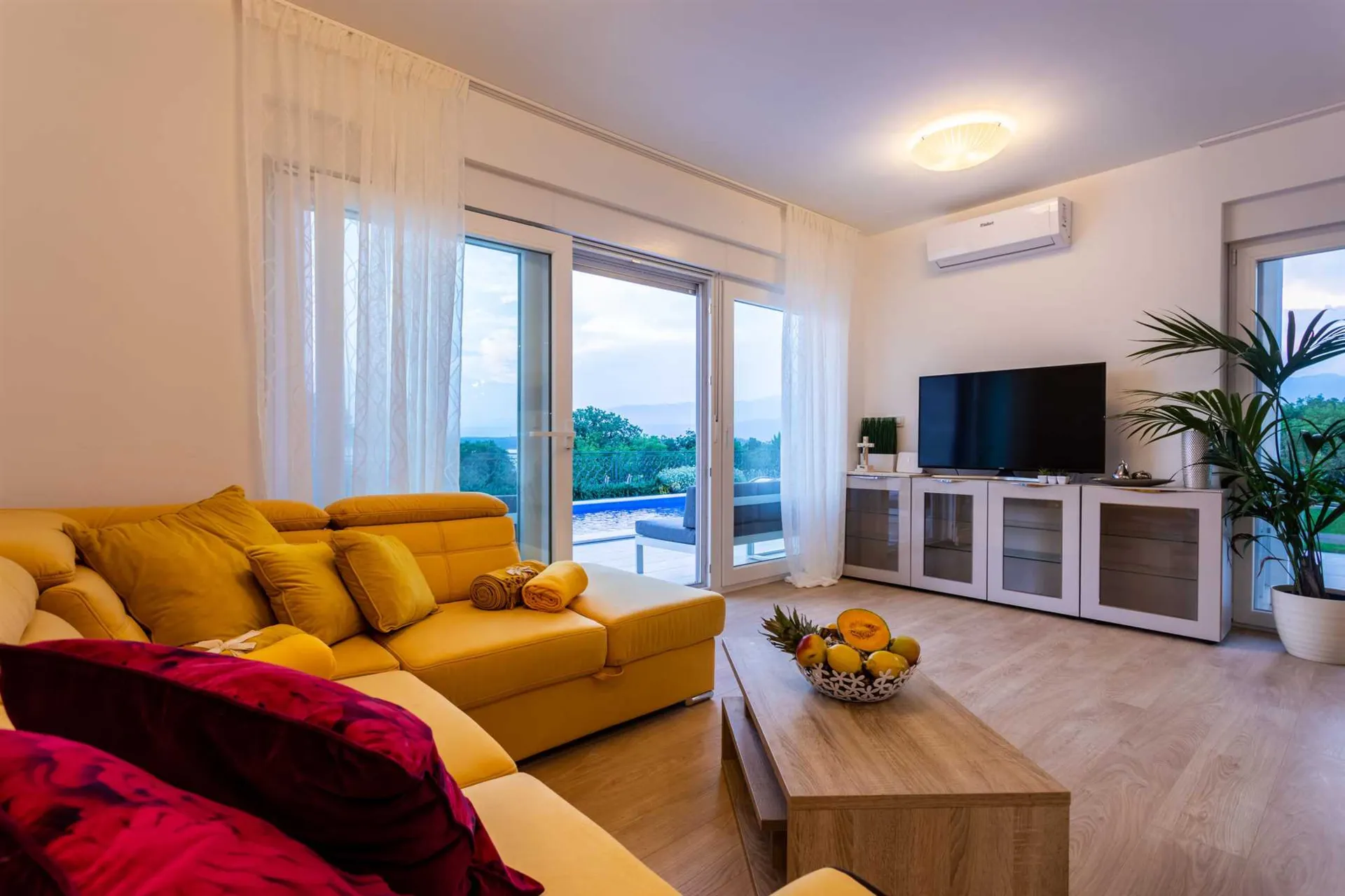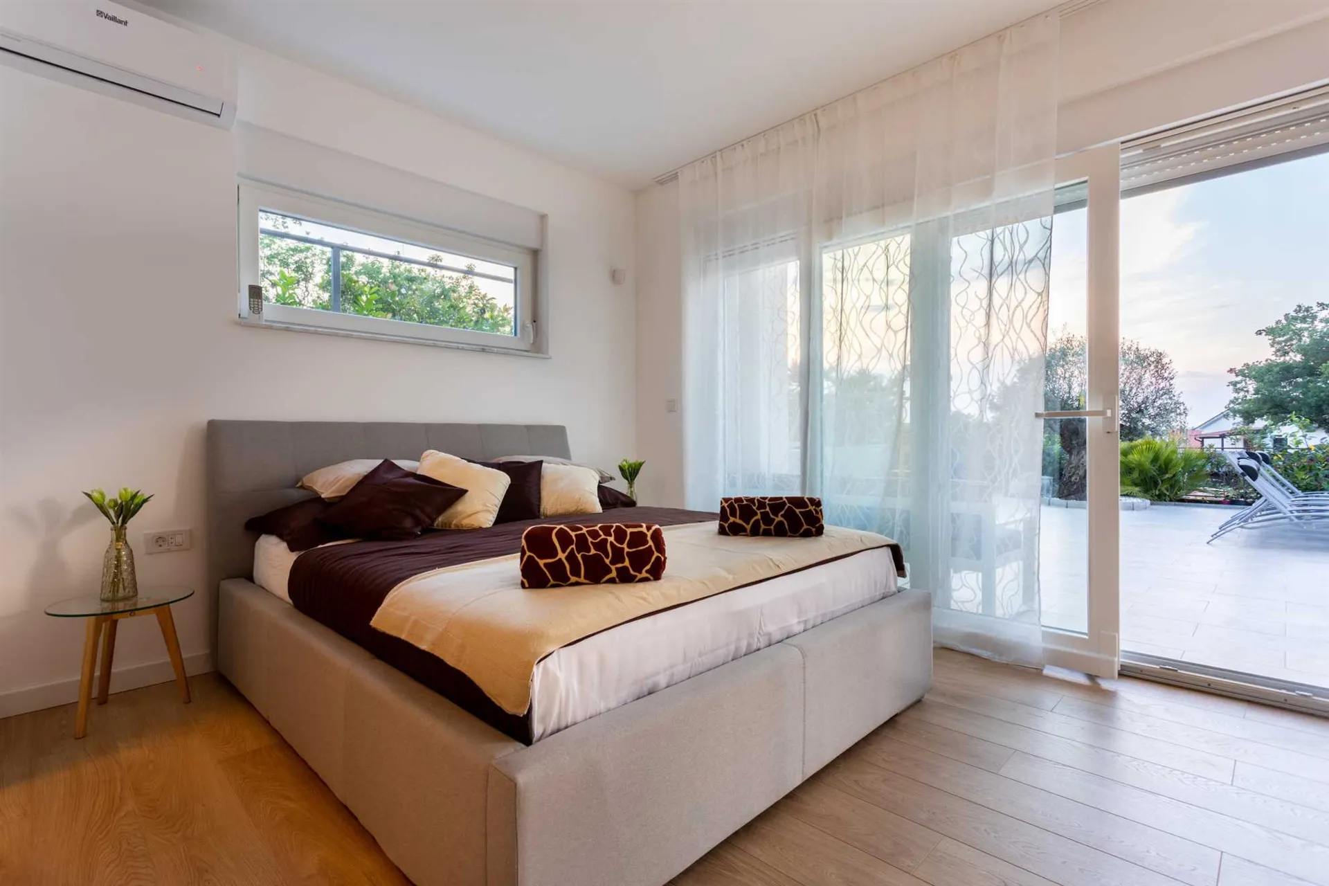 The beautiful Villa Zara***** with swimming pool, hot tub, and sauna is located in the small tourist town of Klimno on the island of Krk, which is far enough away from the tourist bustle, crowds, and traffic, but at the same time it is located near beautiful beaches and promenades where you can enjoy in summer days. The nearest beach is only 150 meters from the villa, and there are also shops, restaurants, and other facilities nearby that will complete your stay. Villa Zara, which is equipped according to the highest standards, extends over two floors and can host up to 8 people in four bedrooms with double beds, one of which contains a sauna, and consists of 4 bathrooms and a separate toilet, a spacious living room with a dining room and a fully equipped kitchen on the ground floor of the house. Here you can also find a hot tub that overlooks the terrace and garden. At the exit of the villa, there is a wonderful terrace with a view of the heated swimming pool and the sea, where you will surely enjoy the relaxing atmosphere and rest from your busy everyday life. Villa Zara is ideal to stay at any time of the year because it is fully air-conditioned and also has central heating, a romantic fireplace in the living room, a heated swimming pool, and a heated hydromassage tub. Villa Zara is perfect for your vacation and it is exactly what you deserve!