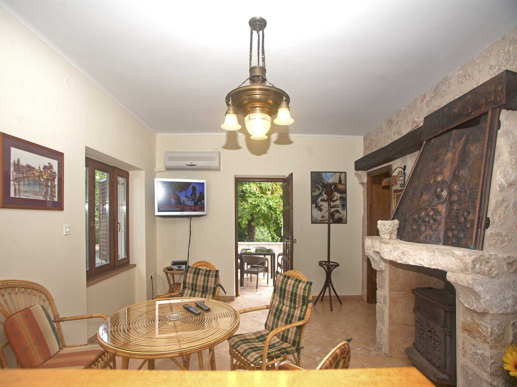 Uživajte u ugodnom boravku u ovom šarmantnom apartmanu koji se nalazi tik uz plažu u Njivicama. Izvanredna značajka ovog objekta je njegova nenadmašna lokacija, more je udaljeno samo nekoliko koraka, što vam daje slobodu da plivate kad god želite i potpuno prigrlite opušteni način života na obali. U obližnjem beach baru nalazi se savršeno mjesto za osvježavajuće piće ili opuštenu večer uz vodu. Apartman je pogodan za do četiri osobe, a uključuje dvije spavaće sobe, kupaonicu i kuhinju s dnevnim boravkom. Kuhinja dolazi s kombiniranom pločom za kuhanje (bez pećnice) i hladnjakom, kao i tosterom, električnim kuhalom za vodu i aparatom za filter kavu za vašu dnevnu udobnost. Iako u apartmanu nema perilice posuđa ili rublja, usluga pranja rublja dostupna je samo 400 metara od objekta. Gosti mogu uživati u TV-u sa satelitskim programima i besplatnom Wi-Fi-ju tijekom svog boravka. Vanjski tuš i kamin/roštilj pružaju dodatnu udobnost i stvaraju ugodno okruženje za boravak na otvorenom. Kućni ljubimci su dobrodošli uz dodatnu naknadu, tako da možete ponijeti svoje krznene suputnike za nezaboravan odmor uz more.