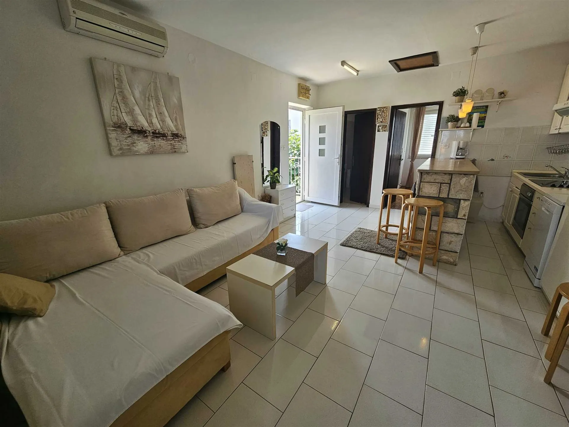 L'appartamento Buza si trova al primo piano di una casa di famiglia nel villaggio di Zidarići, che si trova a poco più di 1500 metri dal centro di Malinska. La spiaggia si trova a 250 metri dall'appartamento. L'appartamento Buza è di 35 m2 e può ospitare 2 persone. Si compone di una camera da letto con letto matrimoniale, una sala da pranzo, un soggiorno e una cucina, un bagno con doccia e un balcone coperto con vista parziale sul mare. Avrete inoltre accesso a un giardino, barbecue, parcheggio, aria condizionata, TV satellitare, lavastoviglie e lavatrice. Gli animali domestici sono ammessi.