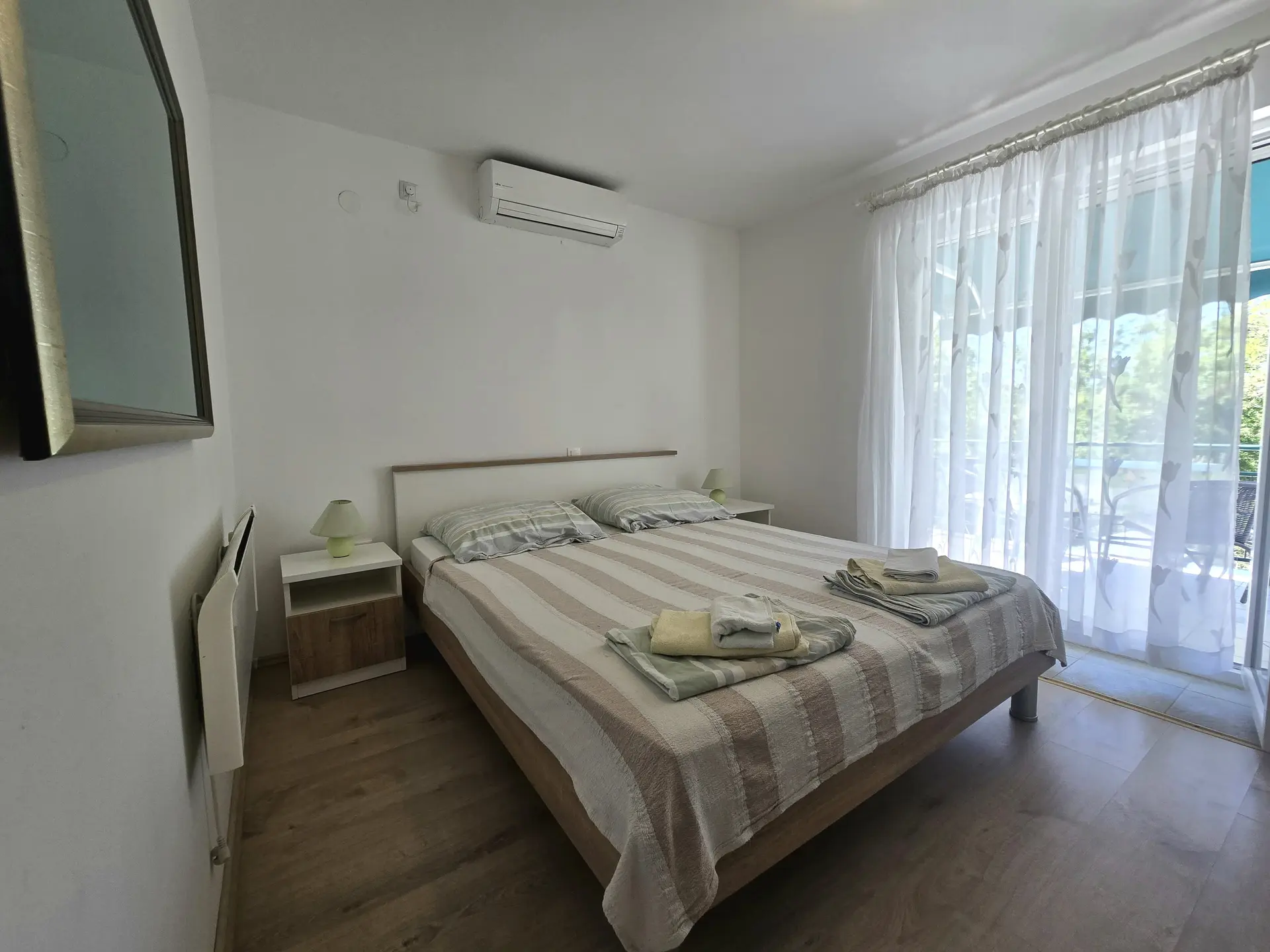L'appartamento Inka 2 si trova al primo piano della casa (e dal retro è al piano terra). È composto da una camera da letto con letto matrimoniale, una camera con letto a castello, una cucina completamente attrezzata con zona pranzo e un bagno. L'appartamento ha un balcone con vista sul mare, ma la vista è oscurata da una fitta foresta, che garantisce maggiore privacy e tranquillità. Inoltre, gli ospiti hanno accesso a una terrazza sul retro della casa, all'ingresso dell'appartamento.