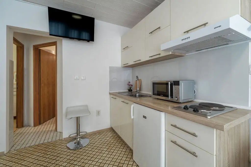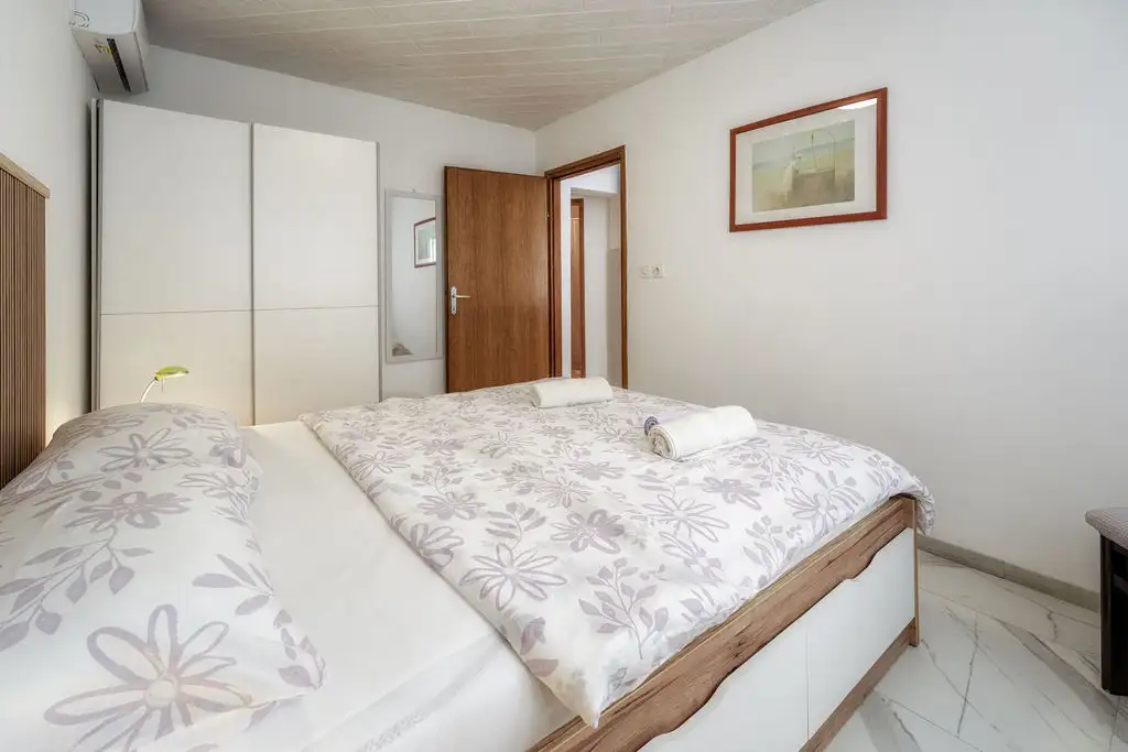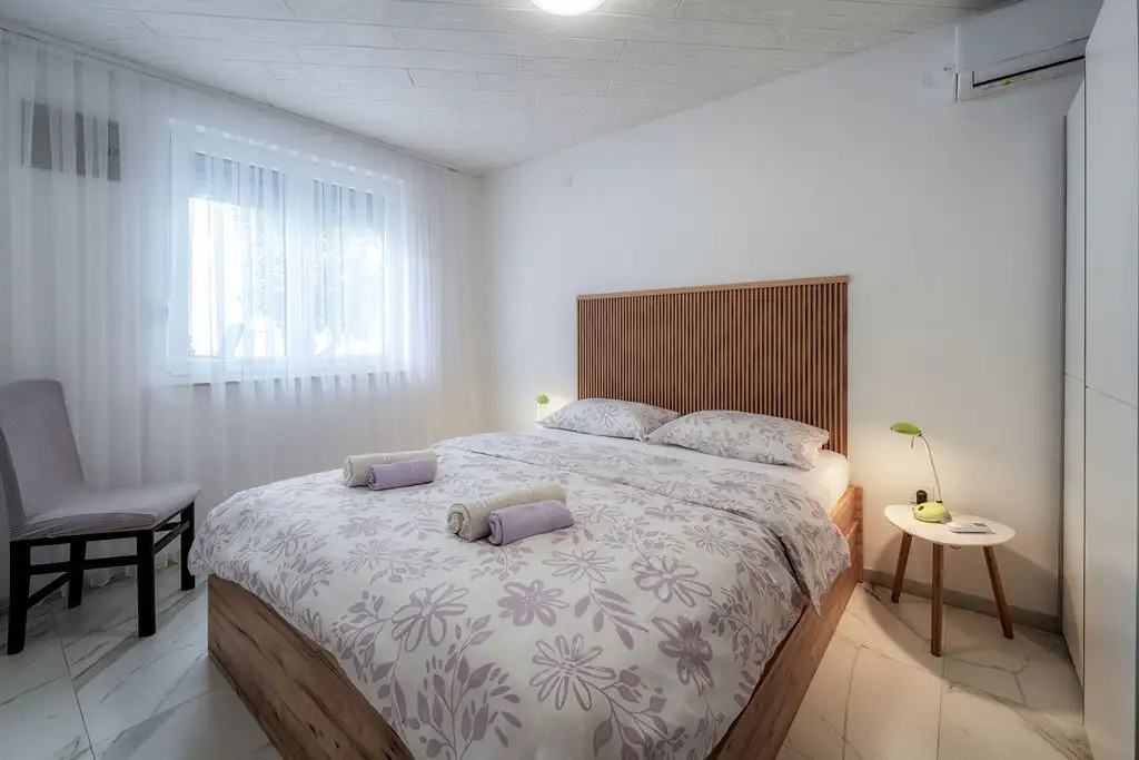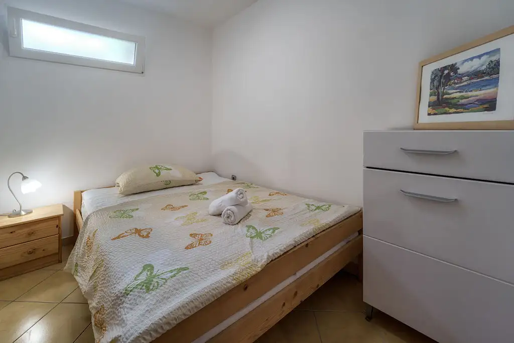 Appartamento Klara 2 è un bungalow con una dimensione di 35 m2 e si trova nel cortile di una casa di famiglia che offre un altro appartamento più grande. Questo bungalow è ideale per 2 a 3 persone, offre una camera da letto, una cucina con sala da pranzo, un bagno con doccia e una comoda terrazza. Si trova a 700 metri dal centro della città di Krk, fornendo privacy con un facile accesso a tutti i servizi locali. Gli ospiti possono godere di aria condizionata, TV-SAT, macchina per il caffè, WiFi, barbecue in giardino, e diversi posti auto che rendono il loro soggiorno ancora più piacevole. Purtroppo, gli animali non sono ammessi in questa casa.